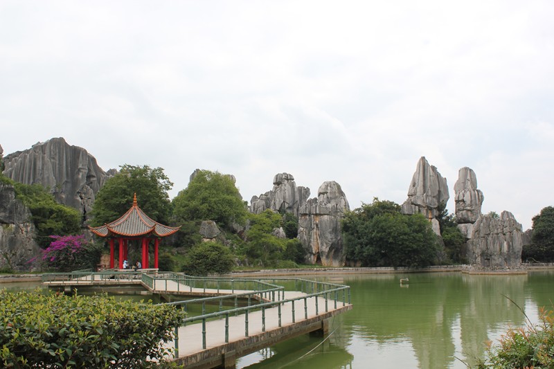 背景的石林是天然的,為了美化環境,湖水則是人工注入的。