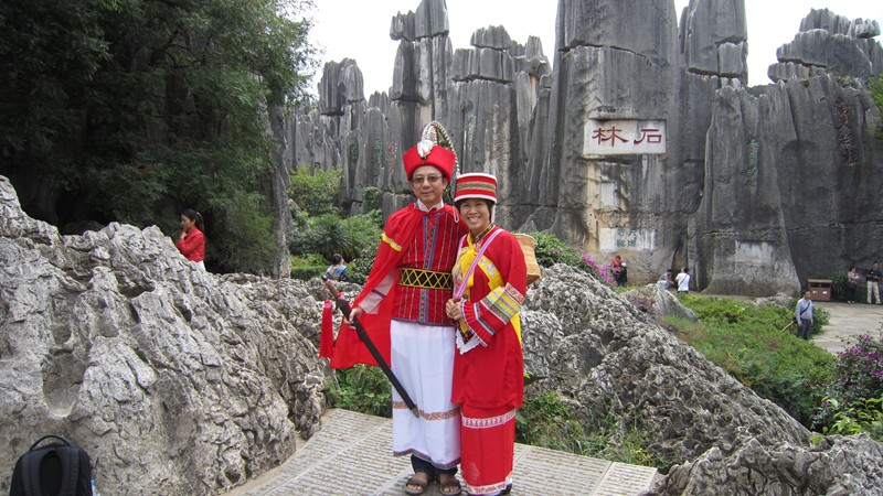 我們這次雲南行,主要目的是參加兩間樹人小學校舍落成典禮,同時也趁此機會,在雲貴一帶旅遊,雲南地區氣候溫和、四季如春,我們的第一個景點石林是在雲南首府昆明的郊區,此地怪石星羅棋布,據說幾億年前,這裡是海洋的底部,由於地殼變動,浮上地面,變成目前我們所看到的美景。