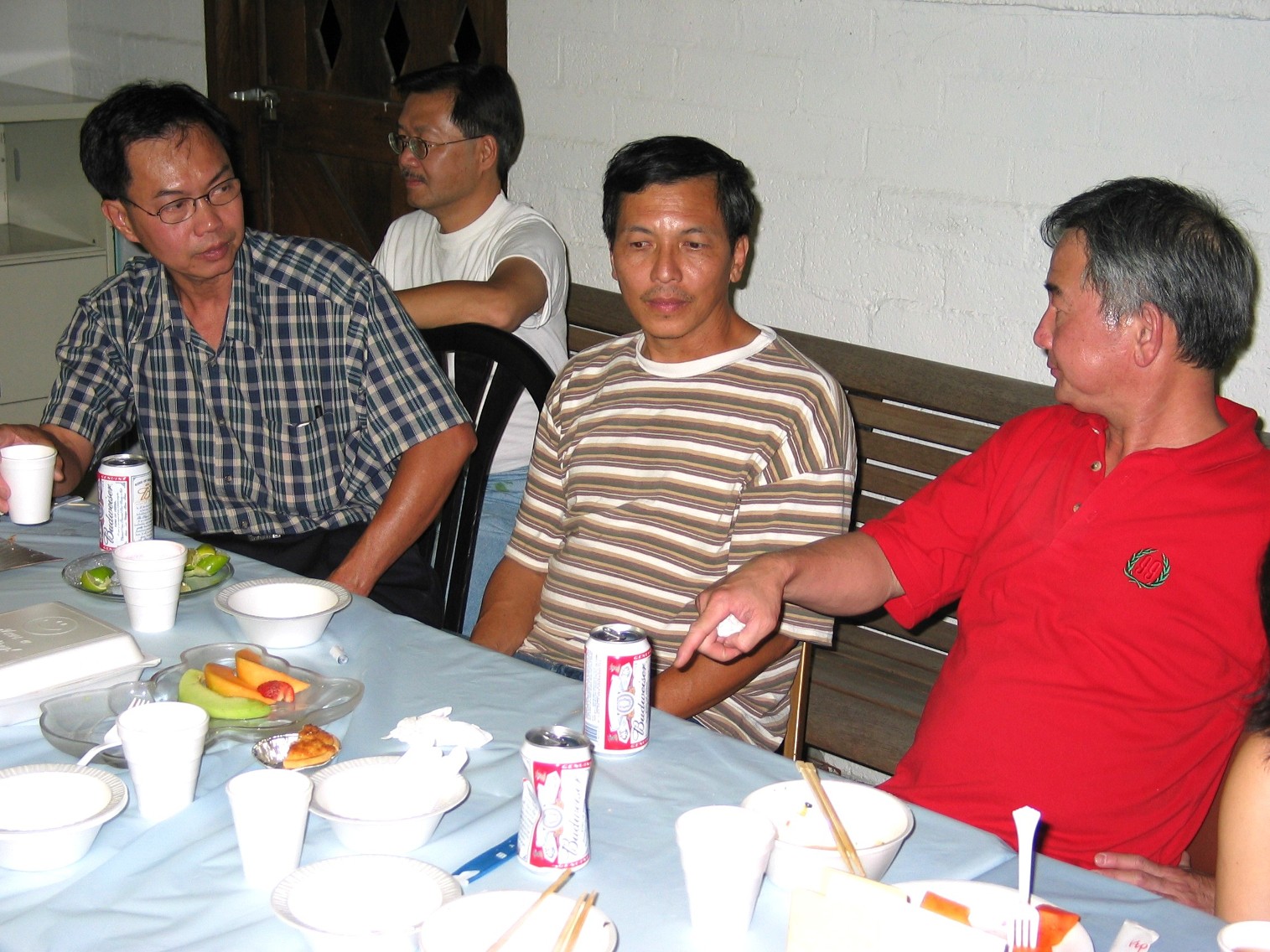 坐者左起: 王永康 老來濱 許彪 (X'mas校友聚會) |