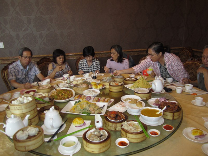 李麗芳(75)因有要事不能出席,這是她第二次臨時取消,上次是台灣之旅,可惜!願下次的聚會能見到她!滿枱的美味點心,猜猜看,十七位老師同學們,可以吃完嗎?