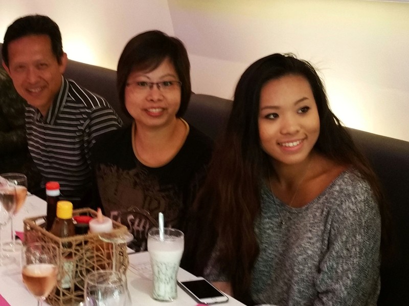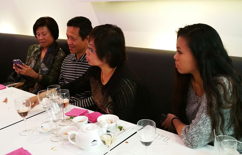 同窗與配偶,紛紛趕去與74年班校友阮自強和黃國華伉儷及女兒一起歡聚。中