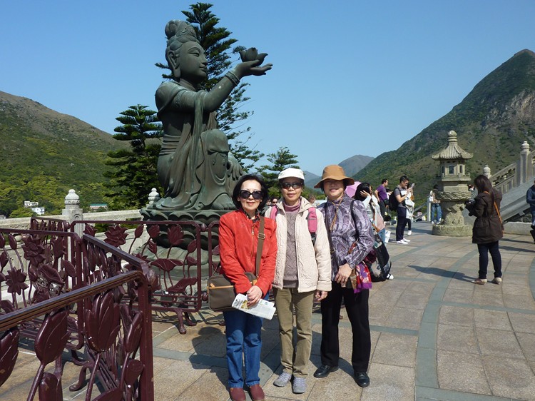 3月5日,陳淑萍逛遊寶蓮寺與劉桂寧及曾慧珍在觀音大銅像旁邊合照,求保佑平安,身體健康。