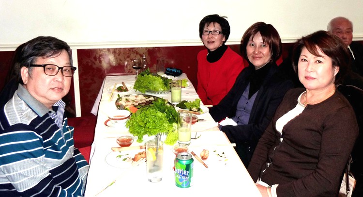 洪佳抵達巴黎火車站時已經是中午12點35分,趕到巴黎13區中國城富都越南餐館時,已經是1點30分左右。天寒地凍大家饑腸轆轆,趕快點菜進餐,竟然忘記先拍照。等到將camera取出來的時候,桌子已經杯盤狼籍。洪佳此時已飽餐一頓,與坐在對面的楊惠馨、黃美娟和陳淑萍繼續閒話家常,直至餐館將近打烊為止。