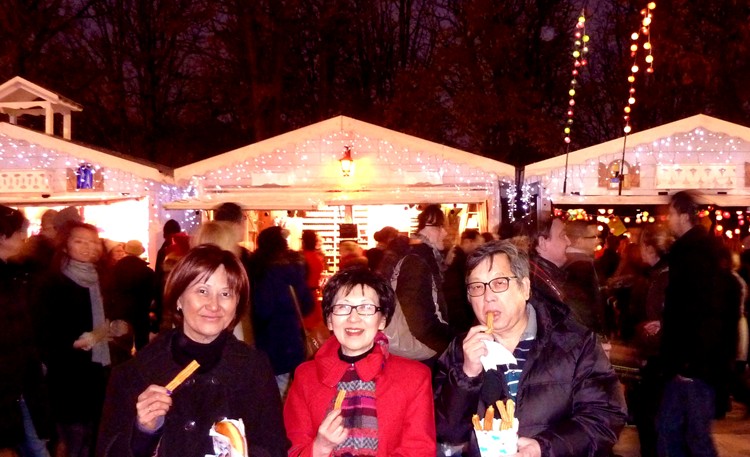 終於走到小攤位鱗次櫛比的聖誕村了,大街兩旁分別擺賣小食和聖誕節飾物。黃美娟最饞嘴,沒走到幾個攤位,就嚷著要洪佳嚐一嚐,帶餡煎餅和法國油條的滋味。大家暫時將禁口,戒口規條拋諸腦後,吃幾口油炸小食,有兒時過農曆新年吃煎堆的感受呀!