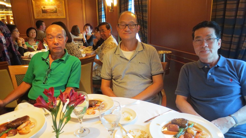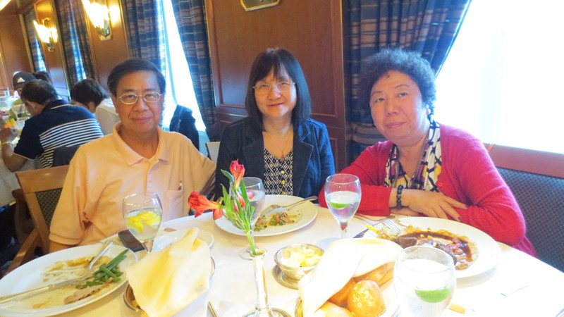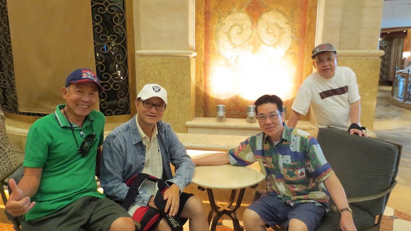 1 二零一五年四月七日,首天聚會於越南飧厅,曾瑞瓊当晚另有约會,怱怱進來打个招呼,和朱景光,張麗桃耒張合照。
