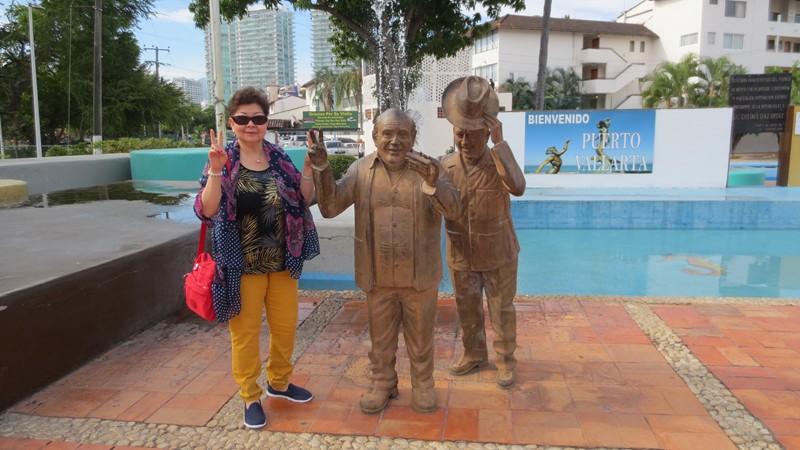 101 這二人铜像很有趣,王燕勤要拍照留念!