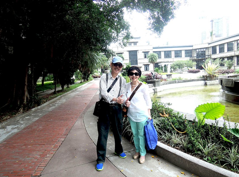 孫人先同學引領遊覽台北松山文化創意園區。建設在中庭內的歐洲巴洛克式花園,卻熱帶草木蔥蘢,枝繁葉茂,蔚為台北市一塊綠洲。