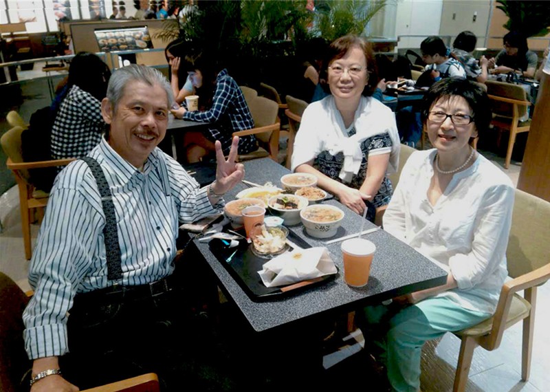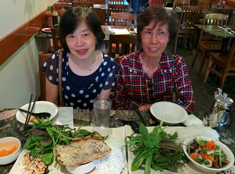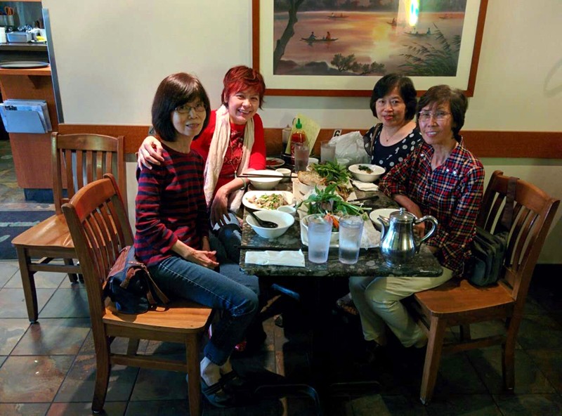 7月18日,(左二)潘藍茵與(右)劉慧虹老師及余小玲在滿地可一家越南餐館歡迎兼送別盧業芬(左一)。盧業芬7月1日已經來到滿地可探望父親。