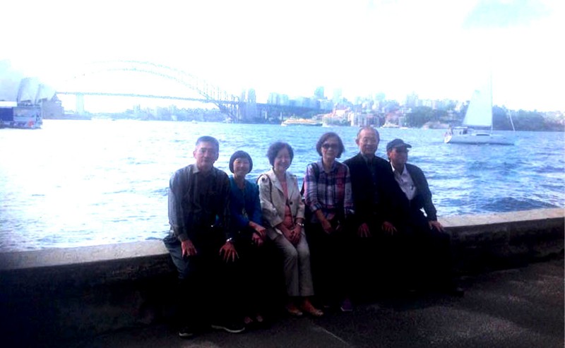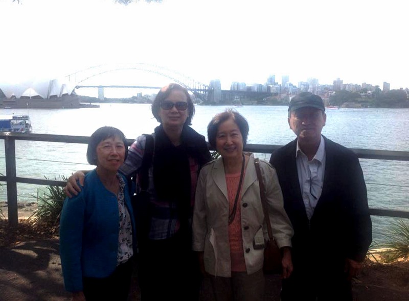 孫人先同學與夫婿周永嘉,大哥和大嫂,趁著參加臺大校友舉辦紐西蘭郵輪聚會活動的機會,2015年12月3日一行從臺北先行匆匆到訪澳洲大城悉尼的時候,獲得僑居當地的啟智中學同窗梁少英,梁少英丈夫張惠民,顏秀慧和陳敬國的熱情接待,並在同學們引領下,觀賞悉尼海港美麗的風光。
