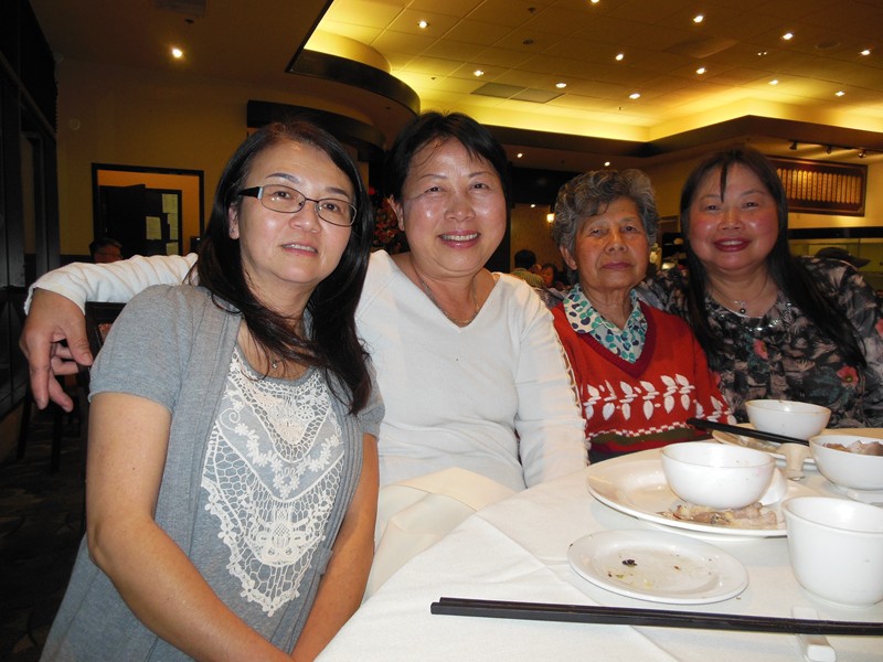 另一輯相片中的那幾張, 則是不久前, 趁著 72L班上的余錦霞同學 (相片中短髮的那位)來訪灣區, 我們聚在李文羌家, 一方面迎接 “霞姑”, 另外也順道為畢銀友及 “啓智之友” 美華姐 (頭髮較長的那位)慶生. 當日中午, 我們先到餐館享用Buffet, 輕鬆自在, 邊吃邊聊, (好像有拍幾張相片吧, 但不見文羌兄寄來). 之後我們回到李文羌府上唱K聊天, 開餐館的“霞姑” 興之所至, 有些 “技癢” 吧, 主動提議由她主理晚餐, 我們也就樂見其成.其實, Buffet 吃得太飽, 晚餐再怎麼豐盛, 大家都吃不了多少, 只有留著打包 to go 了.
