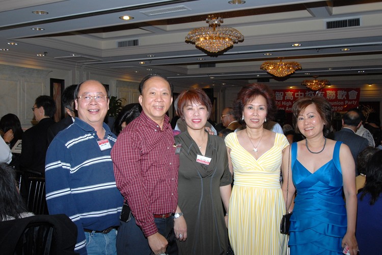 #65 將於1978年畢業的校友(由於越戰結束於1975年)也熱烈的響應來參加我們的聯歡晚會、難能可貴。前排:鄒愛娥 邵美玲 後排:吳麗艷 徐志福 薛寶絲