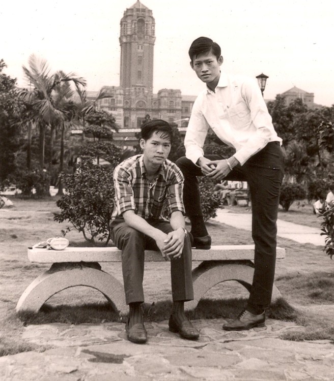 台北市總統府前介壽公園,左起:梁演昌,梁淳昌