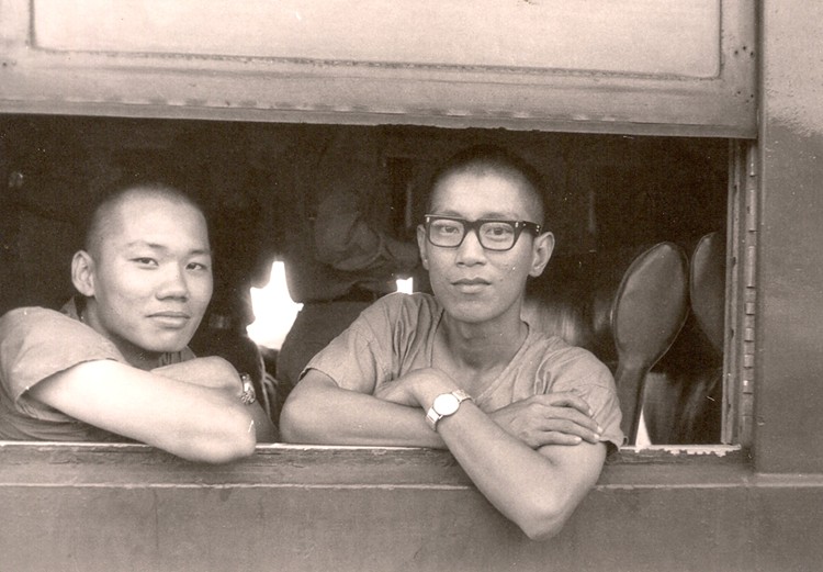 大專集訓中間放假,回台北的火車上。左起:劉克智,陳榮彰