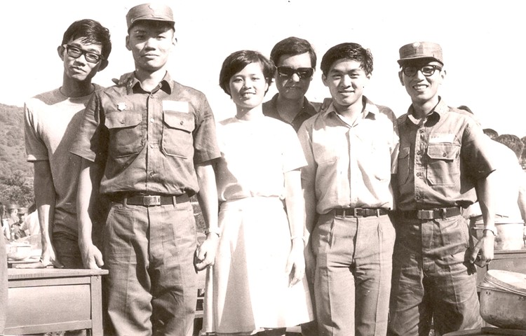 南部橫貫公路工程隊,左起:陳榮彰,司徒銳文,徐永焜,戴立璽(後立,69L),領隊教官,蕭公良(後立),文菁華,林忠誠,陳樹德