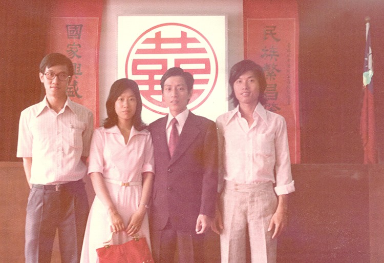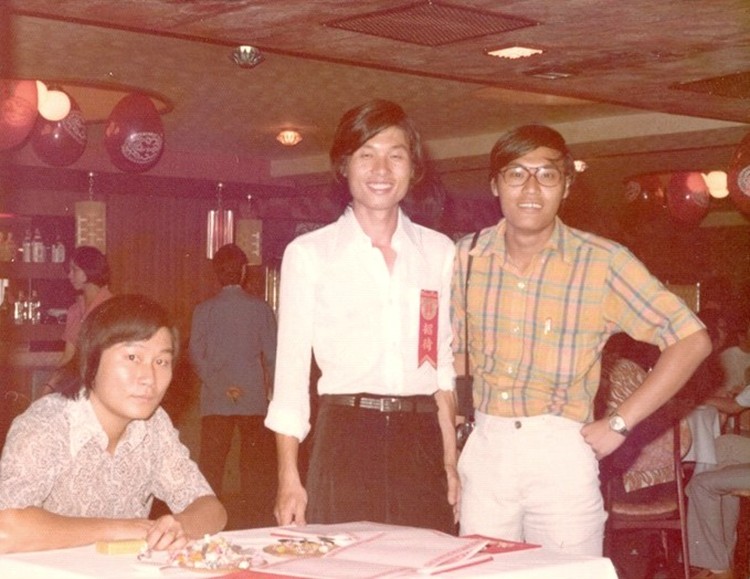 婚禮喜宴,左起:盧筱弟,司徒銳文(介紹人變招待),薛興國(同宿舍室友,還在世界日報寫香港副刊)
