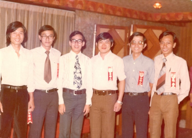 婚禮喜宴。幫忙的兄弟們。左起:司徒銳文,文菁華,黃國盛,方昆敏,莊勵焜,曾俊三。