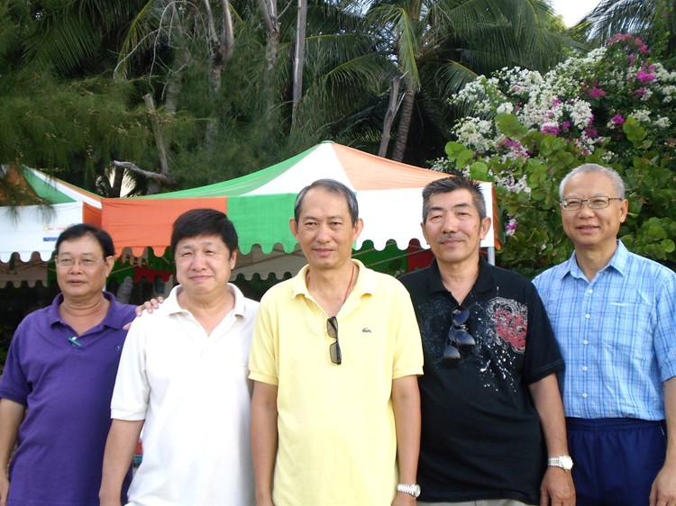 #9 蔡建明與3A/B窗友攝於越南: 符偉民(越南)、蘇柄達(美國加州)、蔡建明、高 奇文(美國加州)、楊崇甲(美國加州)