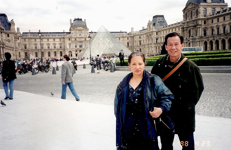 1998年4月23日梁景輝老師和師母遊覽巴黎鐵塔附近的戰神廣場。