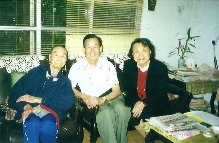 2000年梁景輝老師與容宜讓校長在容校長台灣台北新店安康的寓所內合影。這是台北小城、寓所在僑信路上。