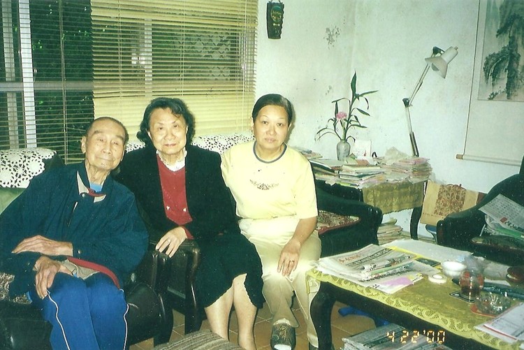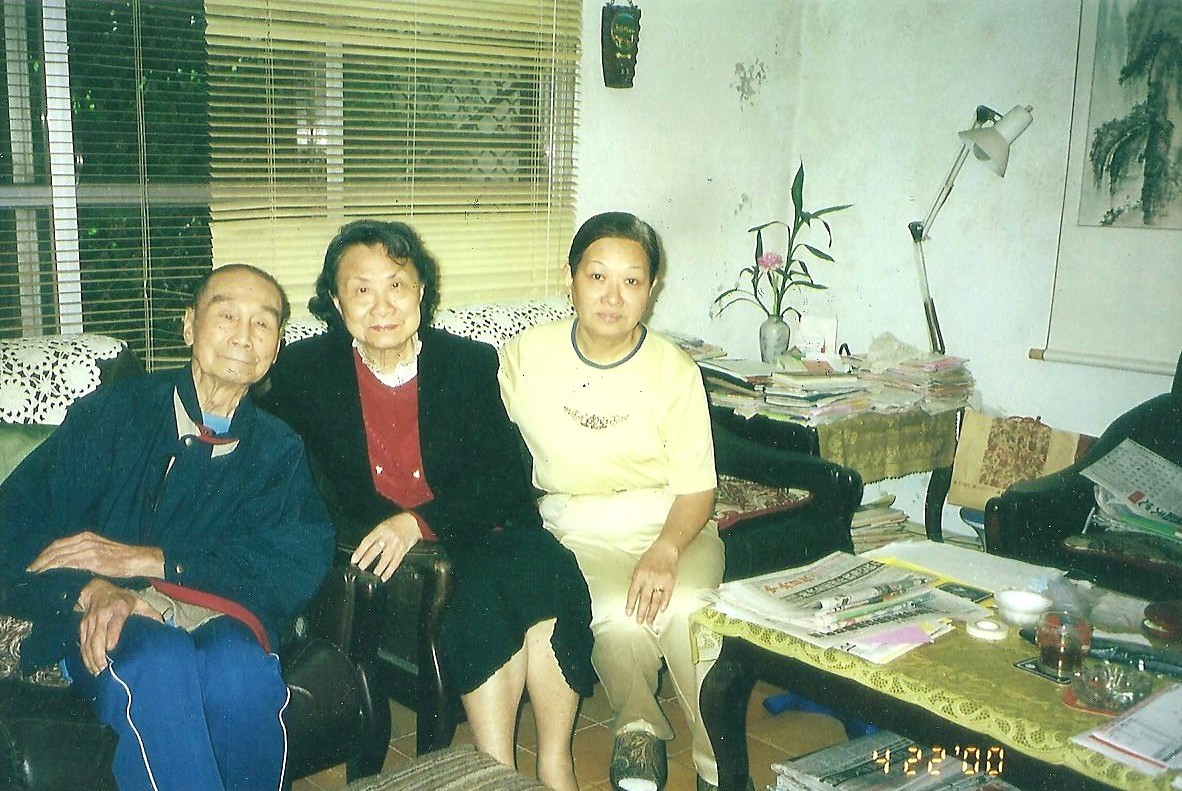 梁景輝老師與容宜讓校長伉儷合影於容校長寓所內,2000年4月22日。