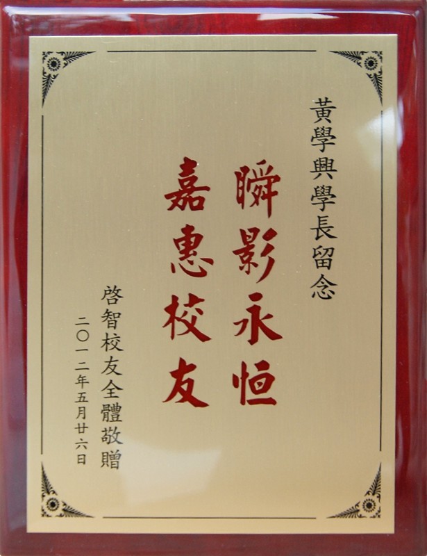 晚會贈給黃學興校友的獎牌,致謝黃學兄義務為晚會攝影。