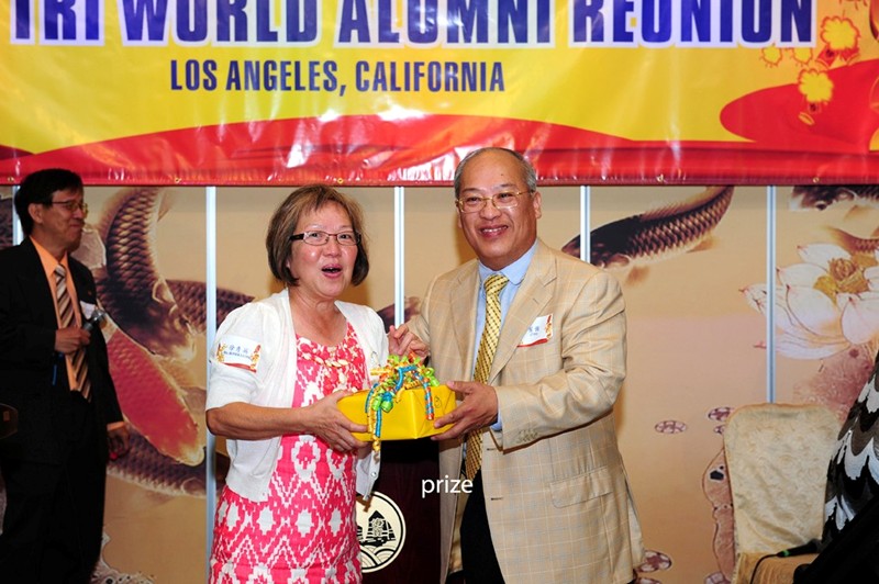 劉慧虹老師(67年文科校友)中兩張迪斯尼樂園入門票,由73文科梁達邦捐贈、68年文科陳治國頒獎。