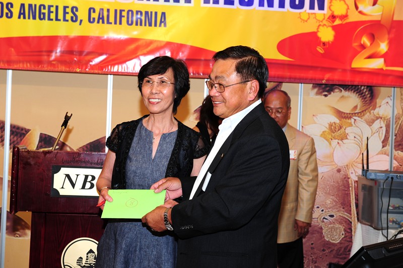 晚會籌備組組長葉強頒獎給徐秀英(黃學興太太)