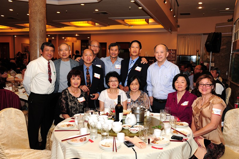 #80 76年校友:坐:朱榮長老師伉儷、鄧蕙英老師。中排立:張英、易嫒卿、龔嘉群、葉娟 立後排:翁世明、黎金萍、李慶良、梁柳林、王妙蓮、趙國明
