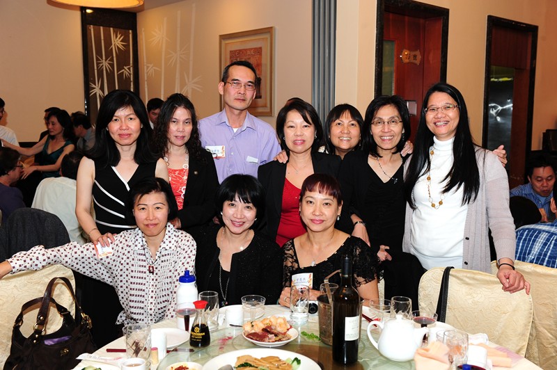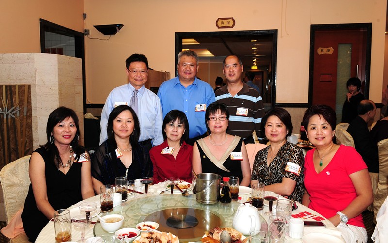 #21 79年校友,立:馮耀雄、徐永明、葉聰。坐:葉慧、麥婉珍、蘇艷樺、柯淑芬、潘麗萍、XXX