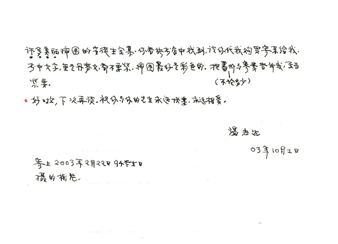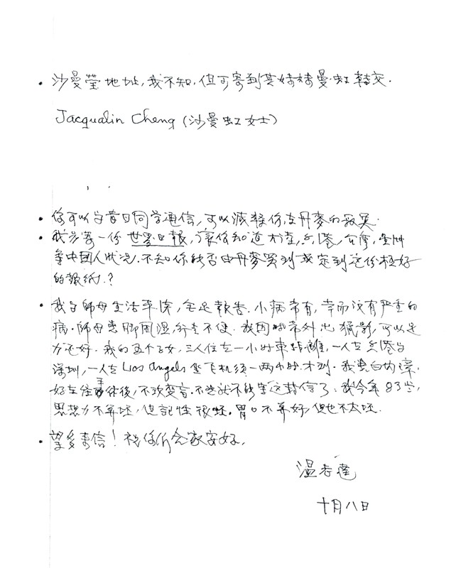 (這是一張非常及時送來的生日賀卡,溫老師于4-16-2004與世長辭,享年97歲)