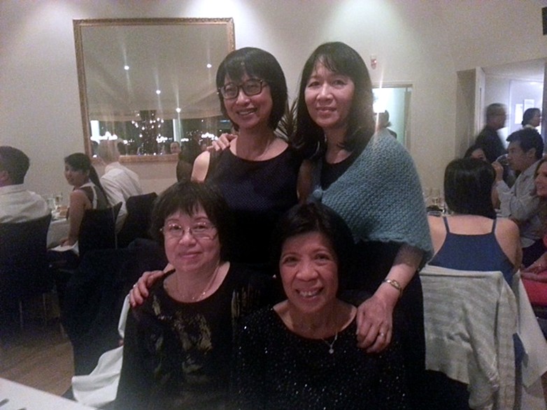 陳家姊妹在北加州聖荷西合影。 左三, 四者為 陳寶芳伉儷。寶芳此次來美探親不會南下洛城。英社同學祝她一路順風。