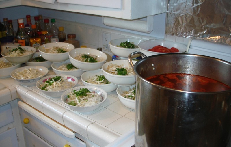 洛城英社同學在史振誠家聚餐 (05-16-2015), 史振誠夫婦準備 Bun Rieu 招待大家。好好吃啊!