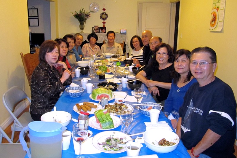 英社班同學在吳多華家聚餐歡迎杜啟桂校友從西雅图南下洛杉磯遊玩 :" 我家在那裡 "