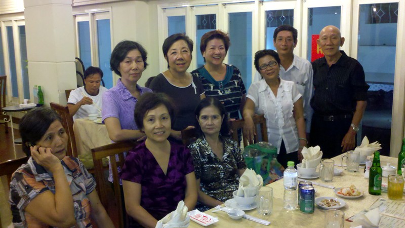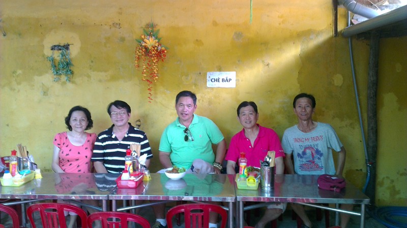 左排那位手拿"大哥大", 肚子碰到餐桌的老板看來是廖之寧吧? (攝於越南峴港)