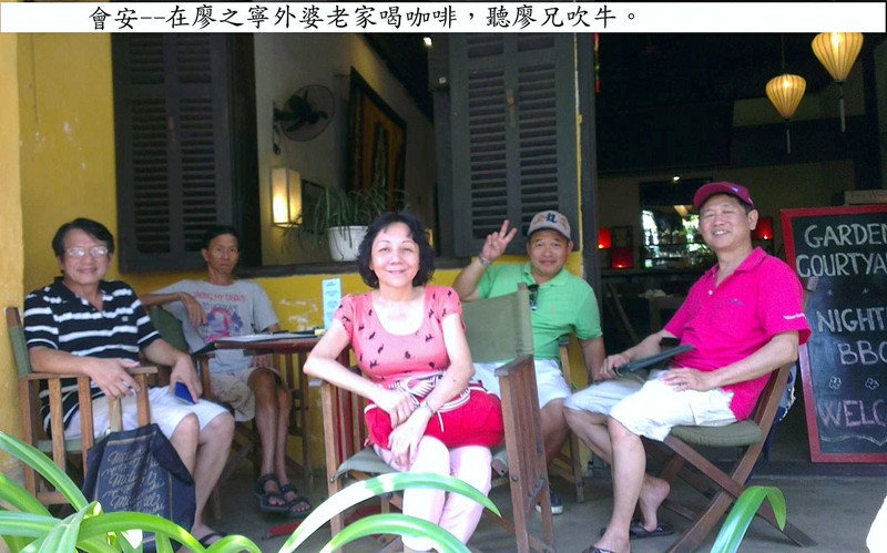 左一者為阿生。攝於另外海邊咖啡館, 這個咖啡館是由一位出生在峴港的美越僑回國特選峴港為退休地所開的。在 Youtube 上得知這位老板曾經是我洛市水電局退休的經理級職員。此次光臨可惜没見到本人。