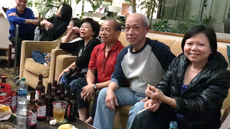 在施英全家集會。圖片中遠來的同學是:李素秋夫婦和譚鎮寶