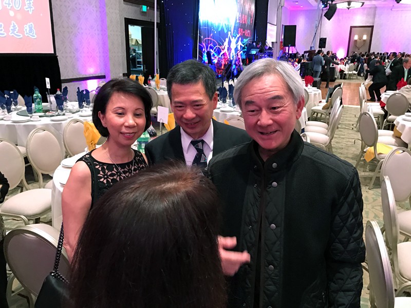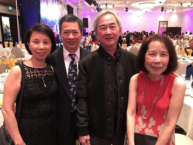 聯歡晚會前一晚在愛滿地市一越餐館的集會. 從外地來的英社同學:蔣水鸿, 李麗芳和余浩潤夫婦