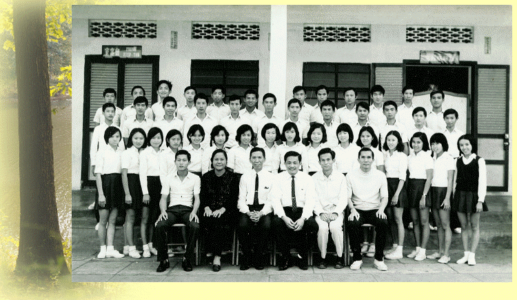 行健社同學攝于樹人中學明道樓1975年高中第6屆 後排: 程廣才 洪德意 老來定 岑曙俐 吳國強 陳俊威 程廣志 許家權 杜聯聰 潘正桐 農雄鳴 許國樑 三排: 陳國豐 葉能舜 吳坤喜 余振興 陳雄 陳慶 陳俊文 吳坤代 黃廣智 彭垂南 李如虹 李隆洲 二排: 陳芬瑩 劉穗芳 徐權 王文玲 彭慧蘭 洪華芳 林曼玲 吳慧芬 張錫霞 王儀嫻 彭麗安 黃桂梅 霍淑明 江朝儀 劉家華 蔡玉蓮 前排: 李允豪班長 施若男老師 張惠生校長 戴玉奇班導師 陳金明老師 劉穆体育主任