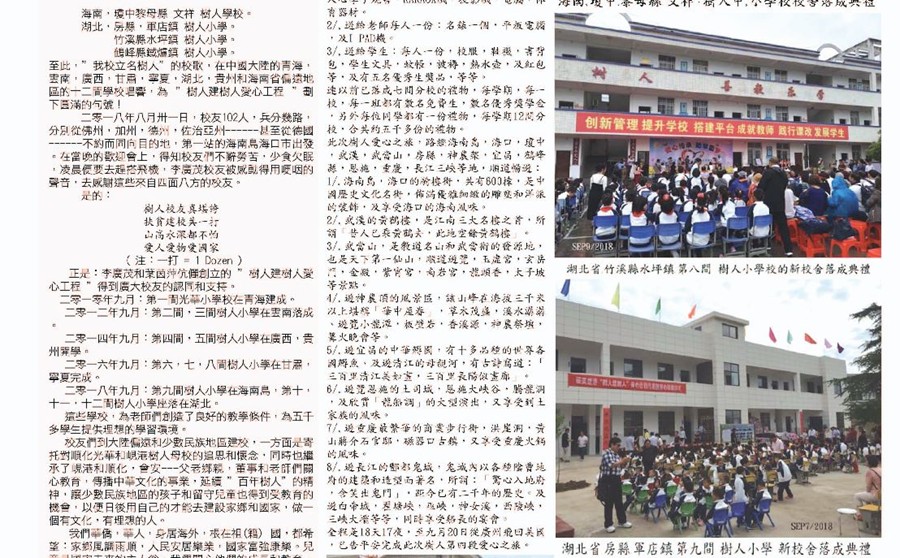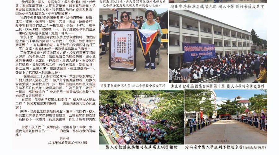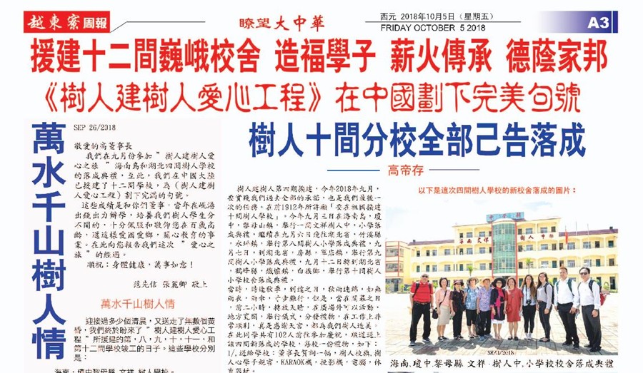 協同下, 計劃建 "拾間樹人學校的計劃" 近年來, 已經在中國建立了七間 "樹人學校", 計劃中尚會建多三間便美滿